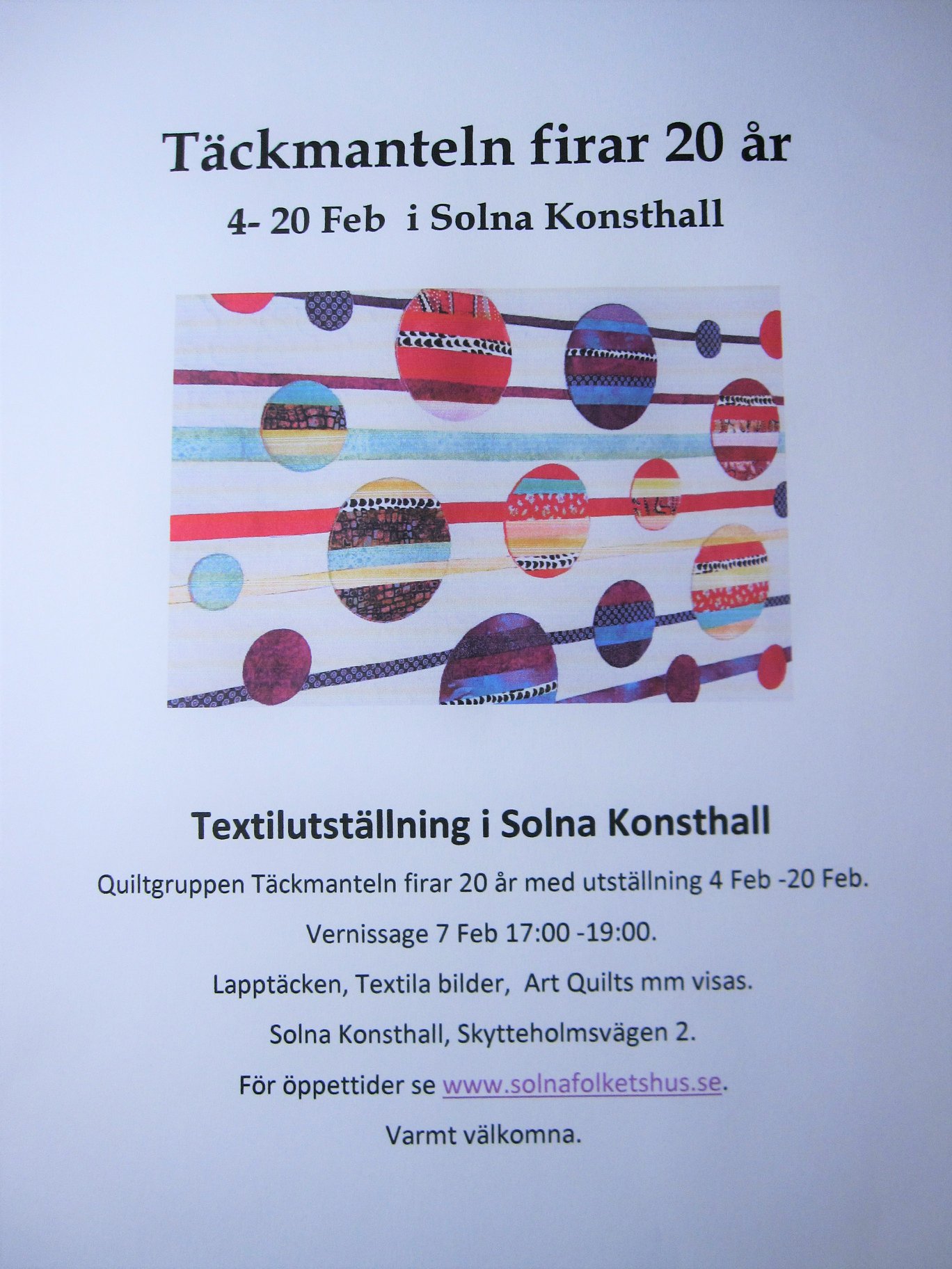 Täckmanteln 20 år Kviltutställning i Solna Konsthall