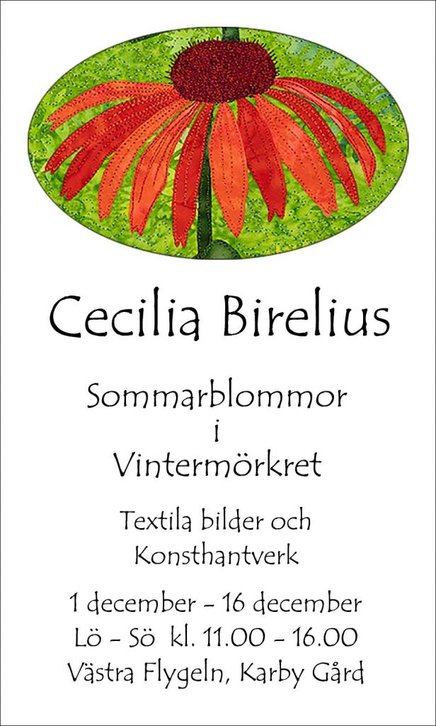 Jag visar mina textila bilder och mitt konsthantverk under de tre första adventshelgerna, 1 – 16 december, lö – sö kl. 11.00 – 16.00 i Västra Flygeln på Karby Gård. Samtidigt med julmarknaden.
