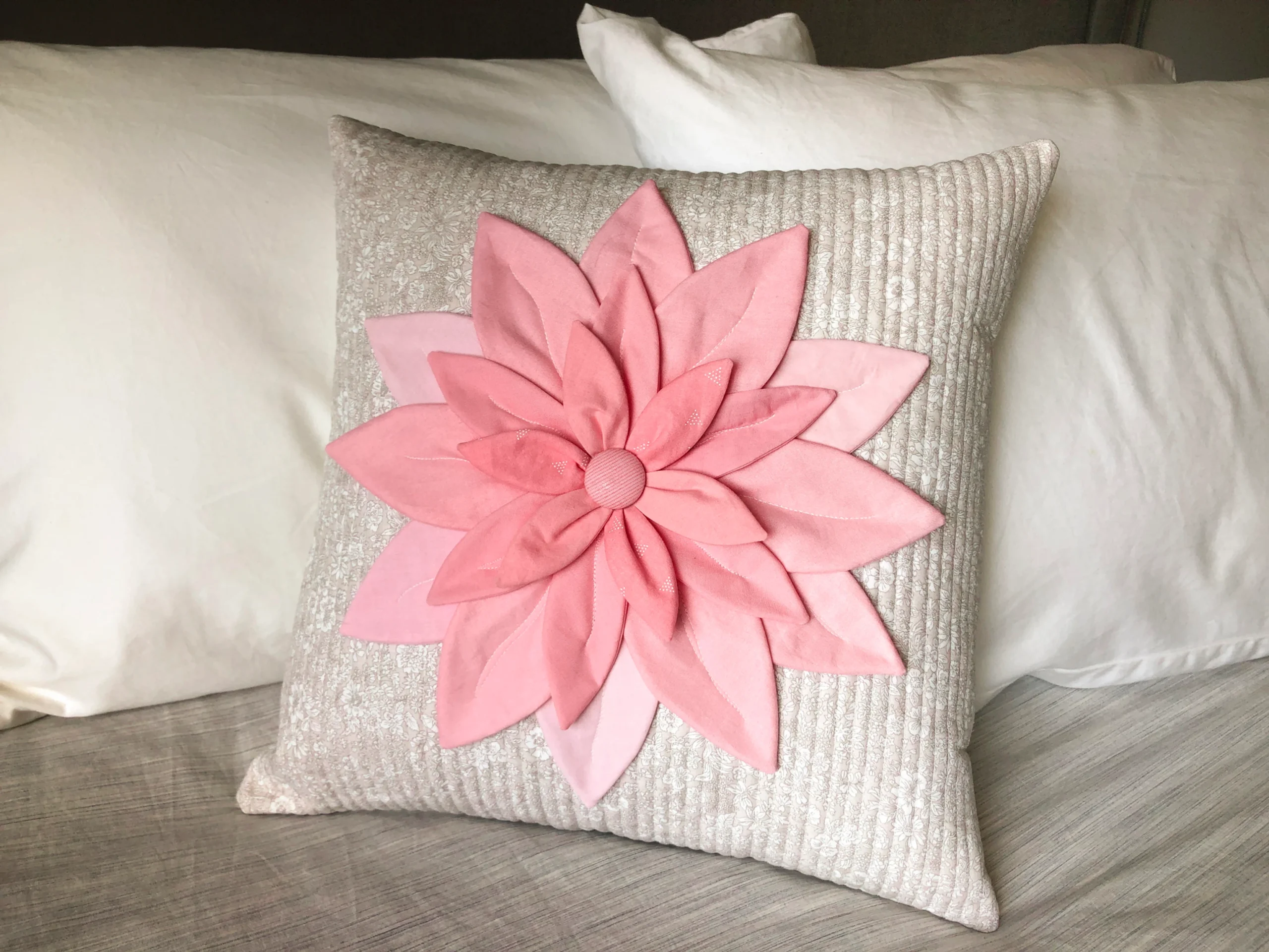 Krista Moser visar på sin hemsida hur man syr en härligt julig kudde med en applicerad julstjärna.