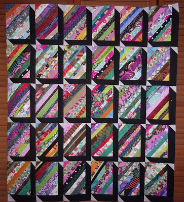 Sharon på Vroomans Quilts delar med sig en beskrivning till hur hon syr remsblock som ser tredimensionella ut.